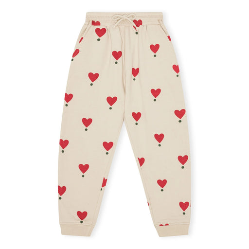 Klæðilegar joggingbuxur með fallegu hjartamynstri úr lífrænni bómull.