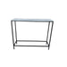 Hliðarborð með marmara plötu og málm fótum.