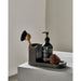 Fallegur keramik bakki með krús fyrir uppþvottabursta. Lengri týpan gefur valmöguleika að hafa uppþvottalögur og hansápu eða svamp á bakkanum.
