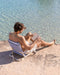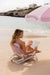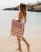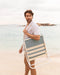 Röndóttur sólstóll hannaður til að gera útiveruna betri. Stóllinn er með vasa aftan á til að geyma smáhluti og er auðveldlega samanbrjótanlegur með handfangi.
