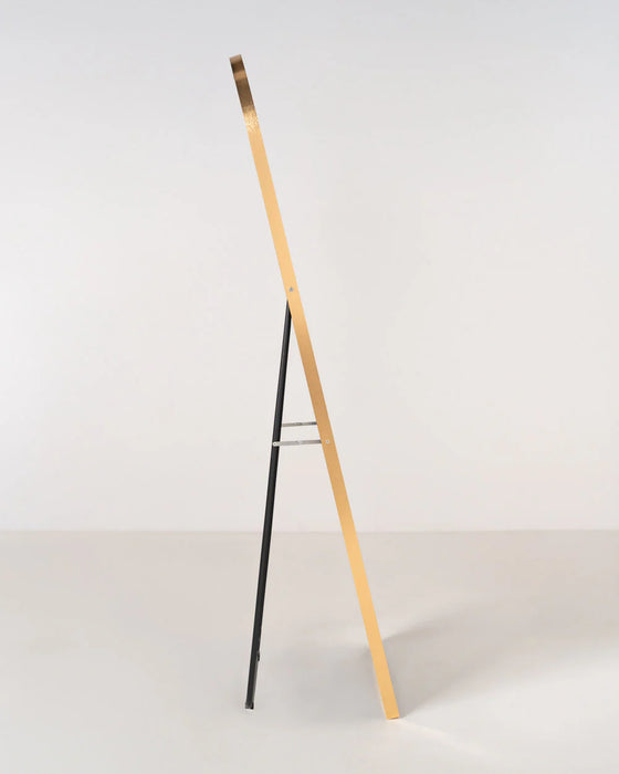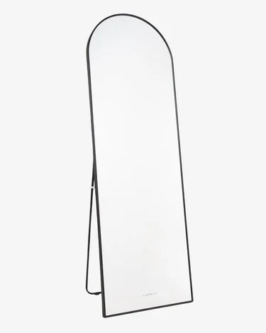 Fallegur spegill með útdraganlegum fæti til að hafa á gólfi og krók að aftan svo hægt er að hengja upp á vegg.