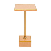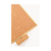 Gullitaðar áherslur á stálrammanum bæta við fágaðan glamúr á meðan borðplatan með polyresin-húðun gerir yfirborðið slitsterkt og auðvelt í þrifum. Borðið er handunnið og því er hvert eintak einstakt með sínum eigin karakter.
