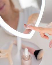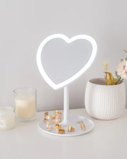 Vandaður hjartalaga LED spegill frá vörumerkinu Flaminguo. Spegillinn er með innbyggðu LED ljósi með þremur birtustigum, kaldri birtu, dagsbirtu og hlýrri birtu. Spegillinn er á stöðugum fæti sem er hægt að halla fyrir aukin þægindi. Hleðslusnúra fylgir með.