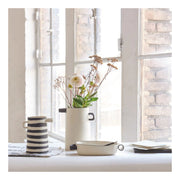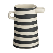 Hönnunin er bæði skúlptúrísk og praktísk, með handföngum sem bæta við sérstöðu og notagildi. Vasinn hentar jafnt fyrir blómaskreytingar og sem sjálfstæður skrautmunur á borði eða hillu.