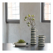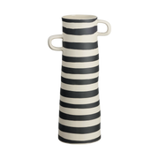 Hönnunin er bæði skúlptúrísk og praktísk, með handföngum sem bæta við sérstöðu og notagildi. Vasinn hentar jafnt fyrir blómaskreytingar og sem sjálfstæður skrautmunur á borði eða hillu.
